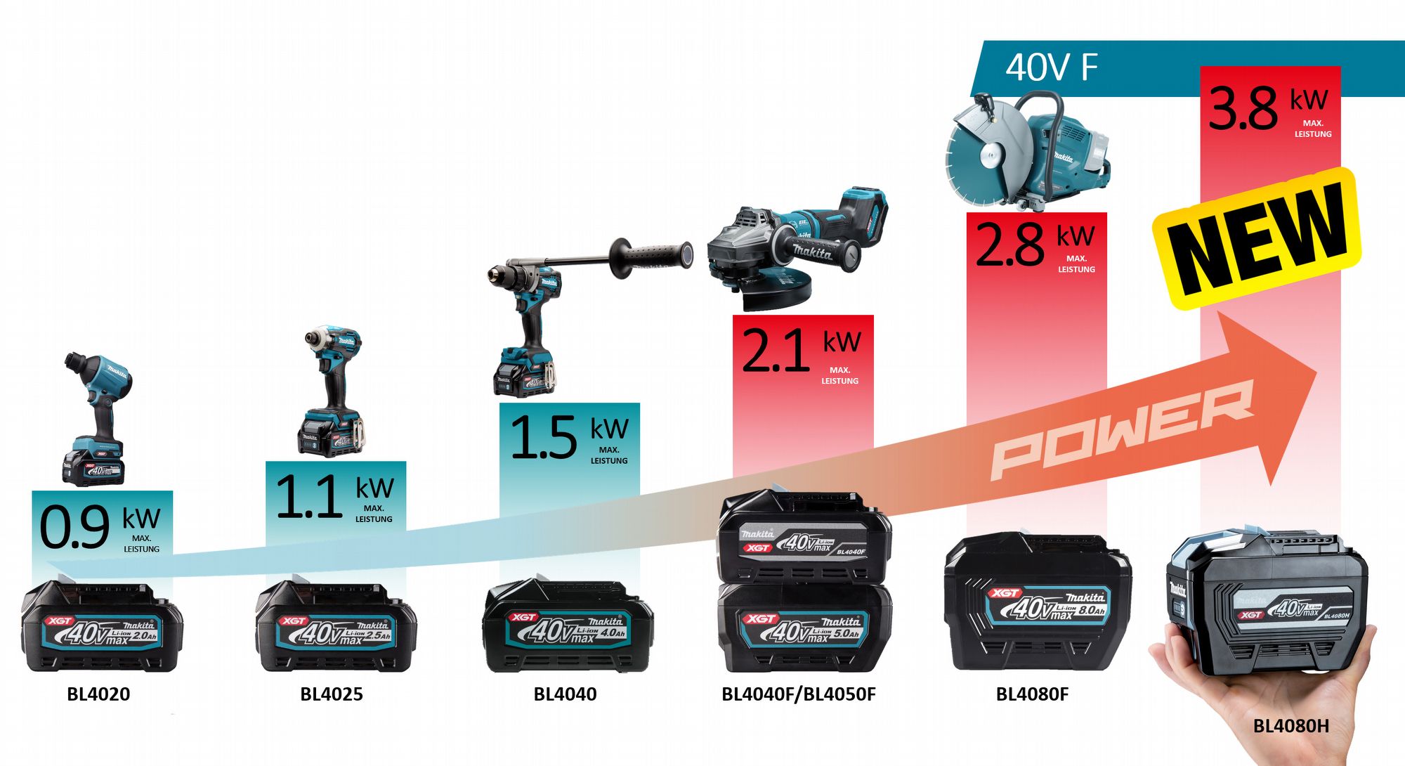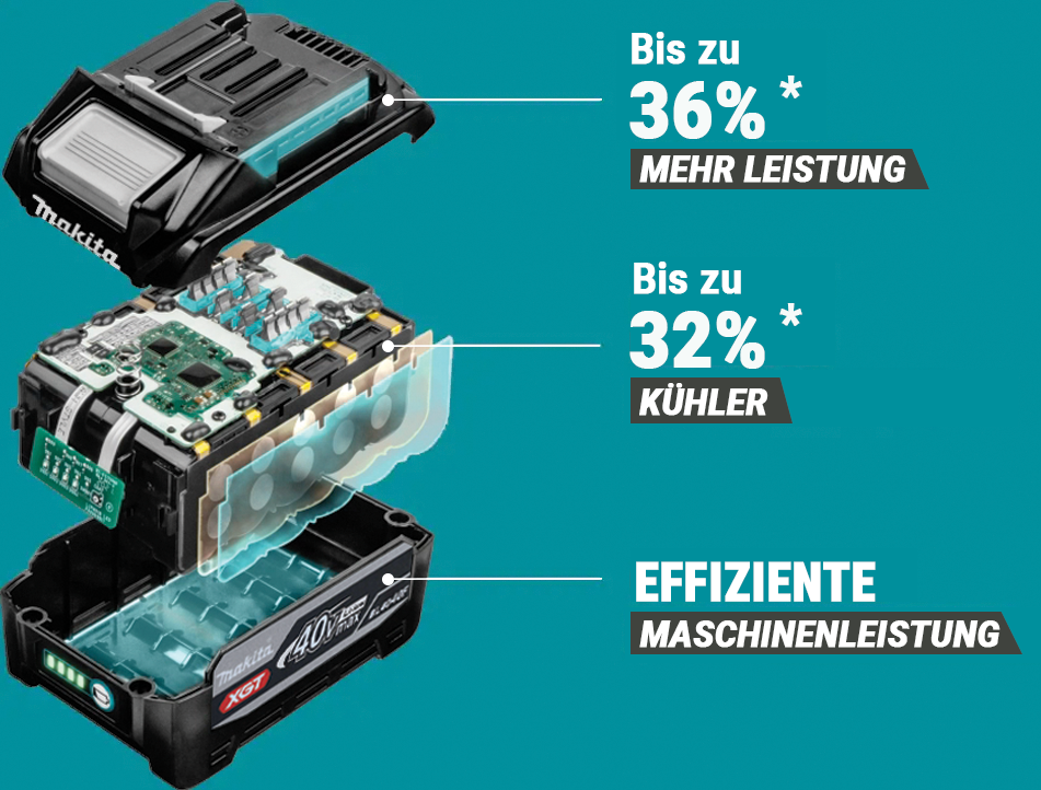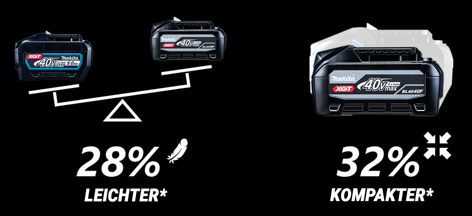 *Im Vergleich zum herkömmlichen Akku BL4040. Änderungen und Irrtümer vorbehalten.
