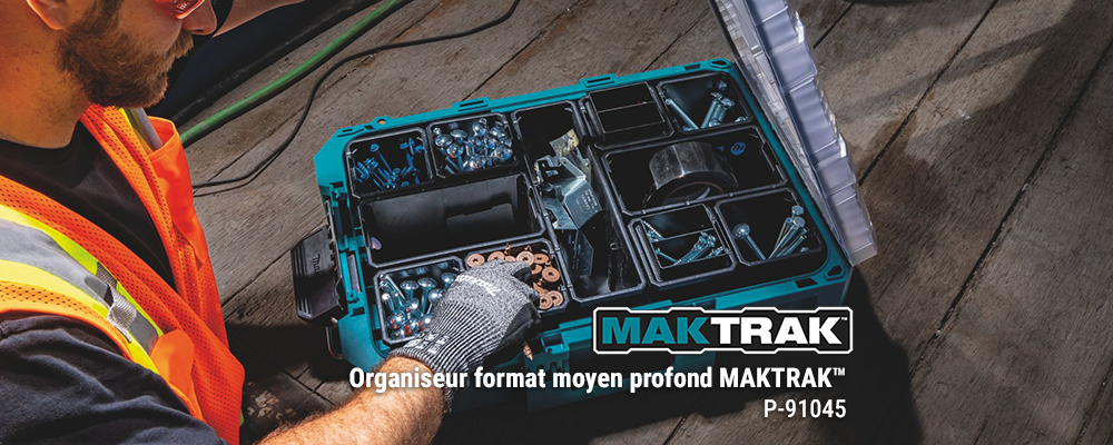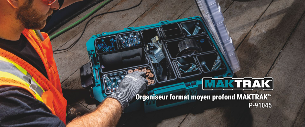 Makita MAKTRAK™ est la nouvelle génération de solutions de rangement modulaires pour transporter, accéder, stocker et organiser les outils, accessoires et équipements sur le chantier.