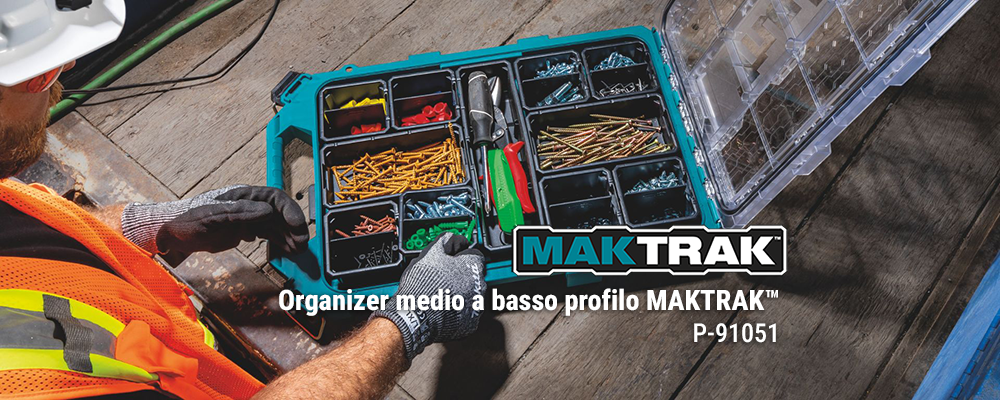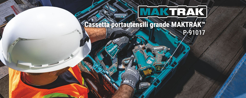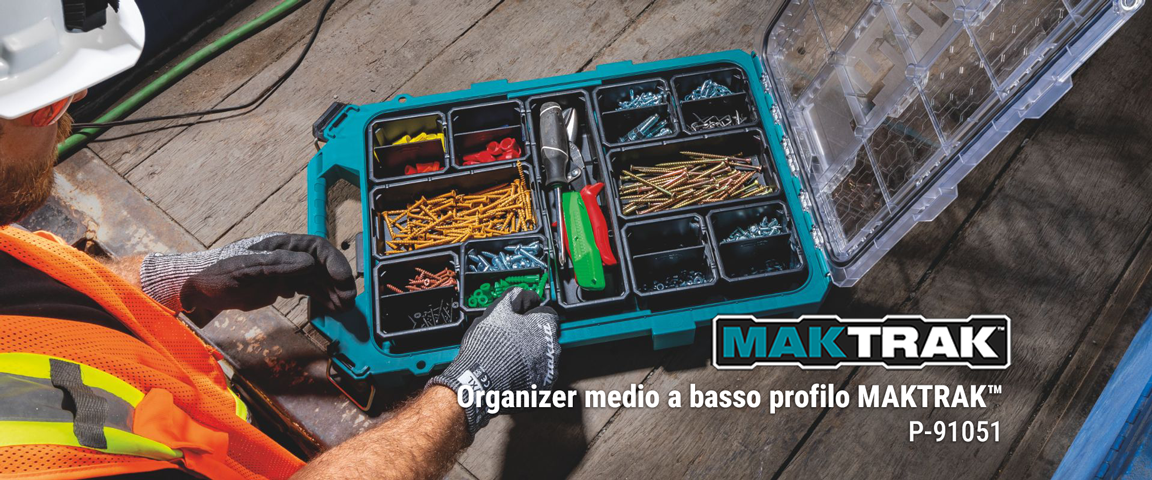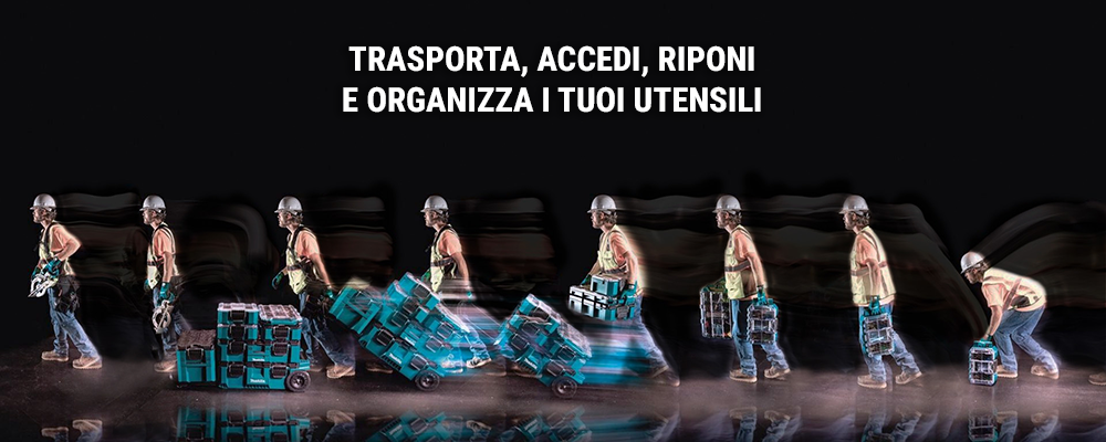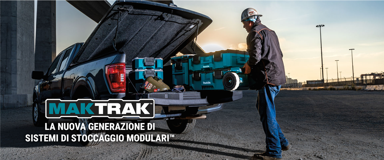 Makita MAKTRAK™ è la nuova generazione di soluzioni di stoccaggio modulari per trasportare, accedere, riporre e organizzare utensili, accessori ed equipaggiamenti in cantiere.