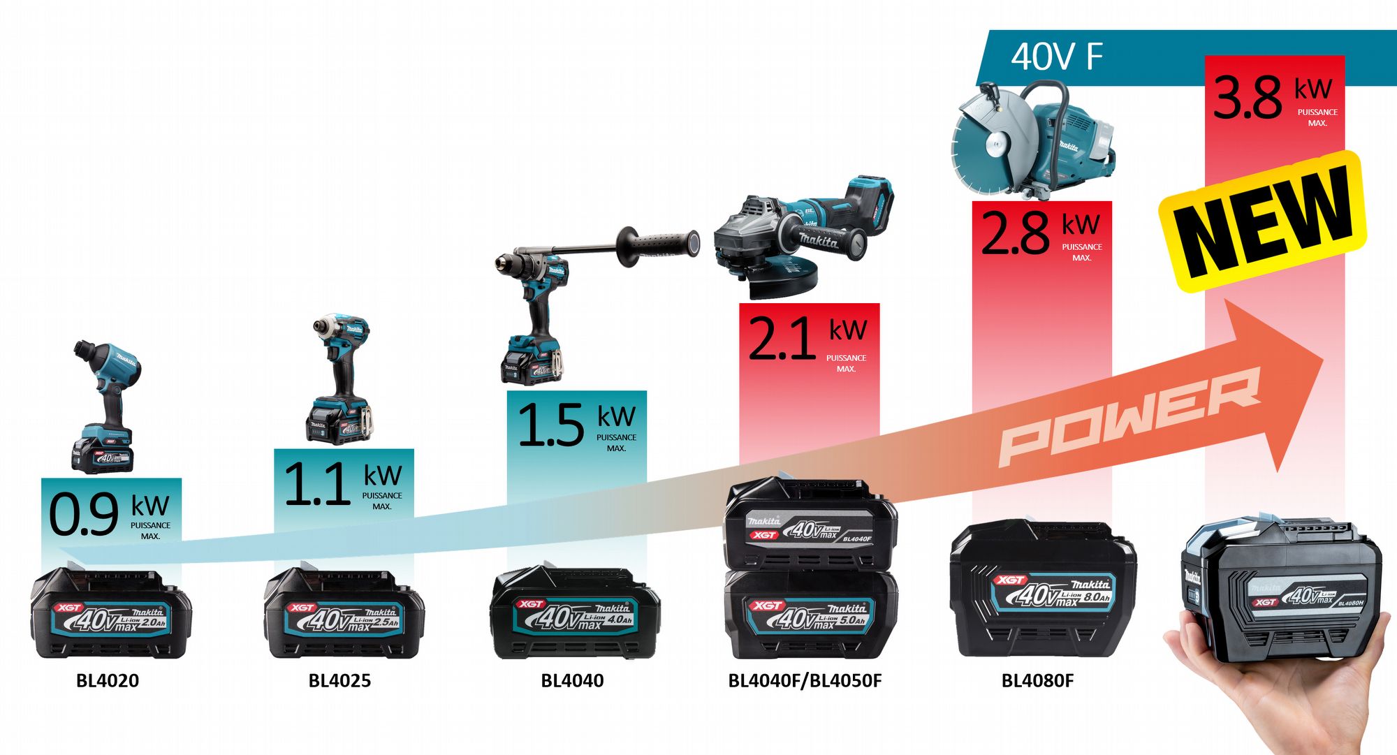 *Comparé à l'accu BL4040. Sous réserve de modifications et d'erreurs.